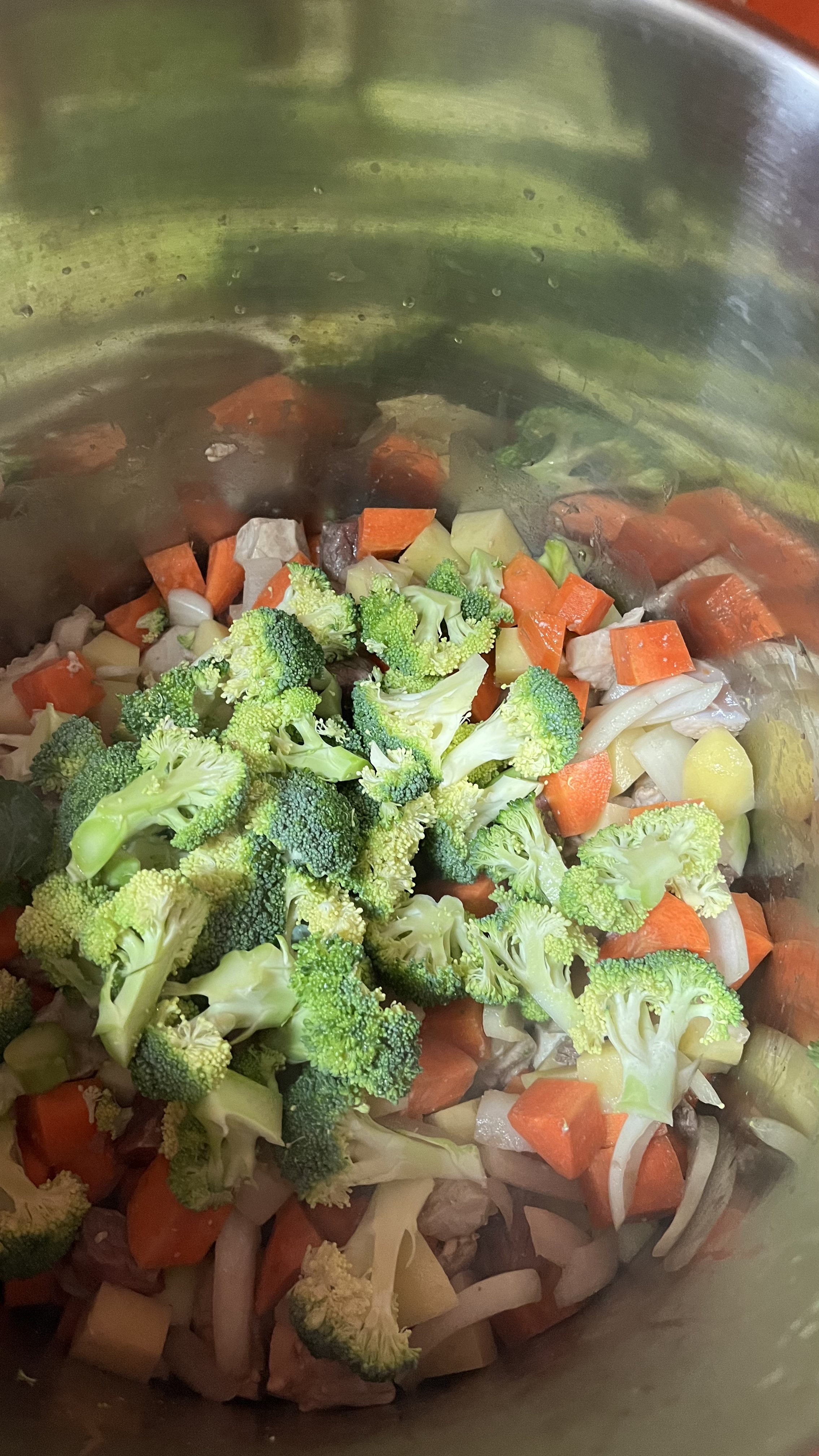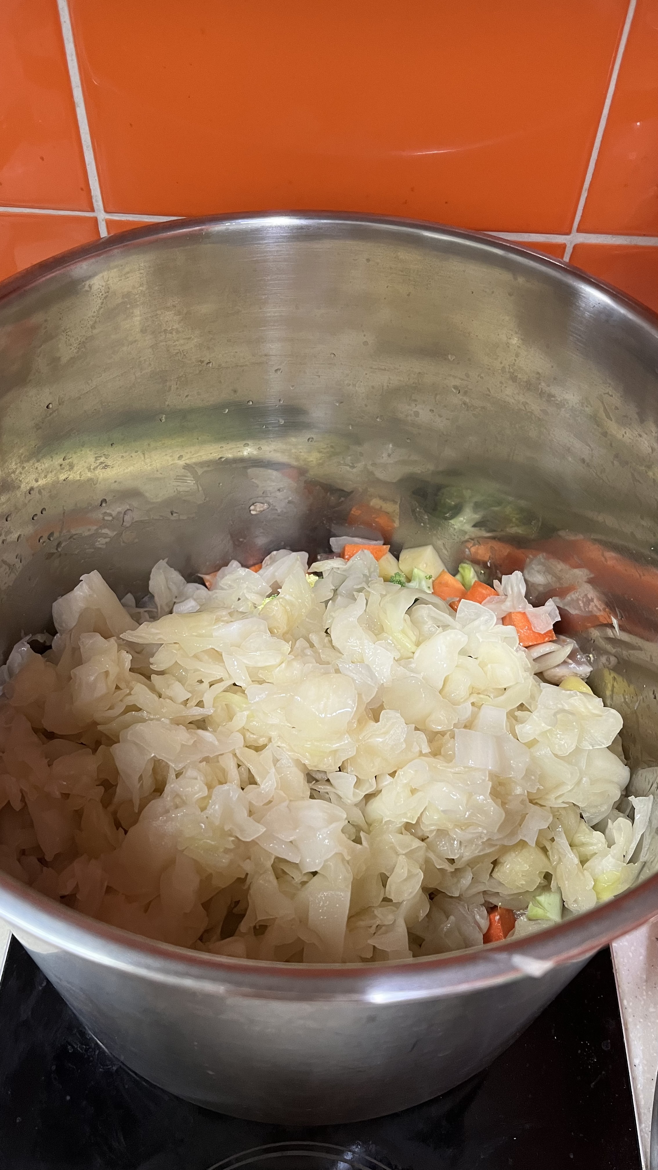 5분 정도 볶다가 브로콜리랑 양배추 넣어줬어요 !