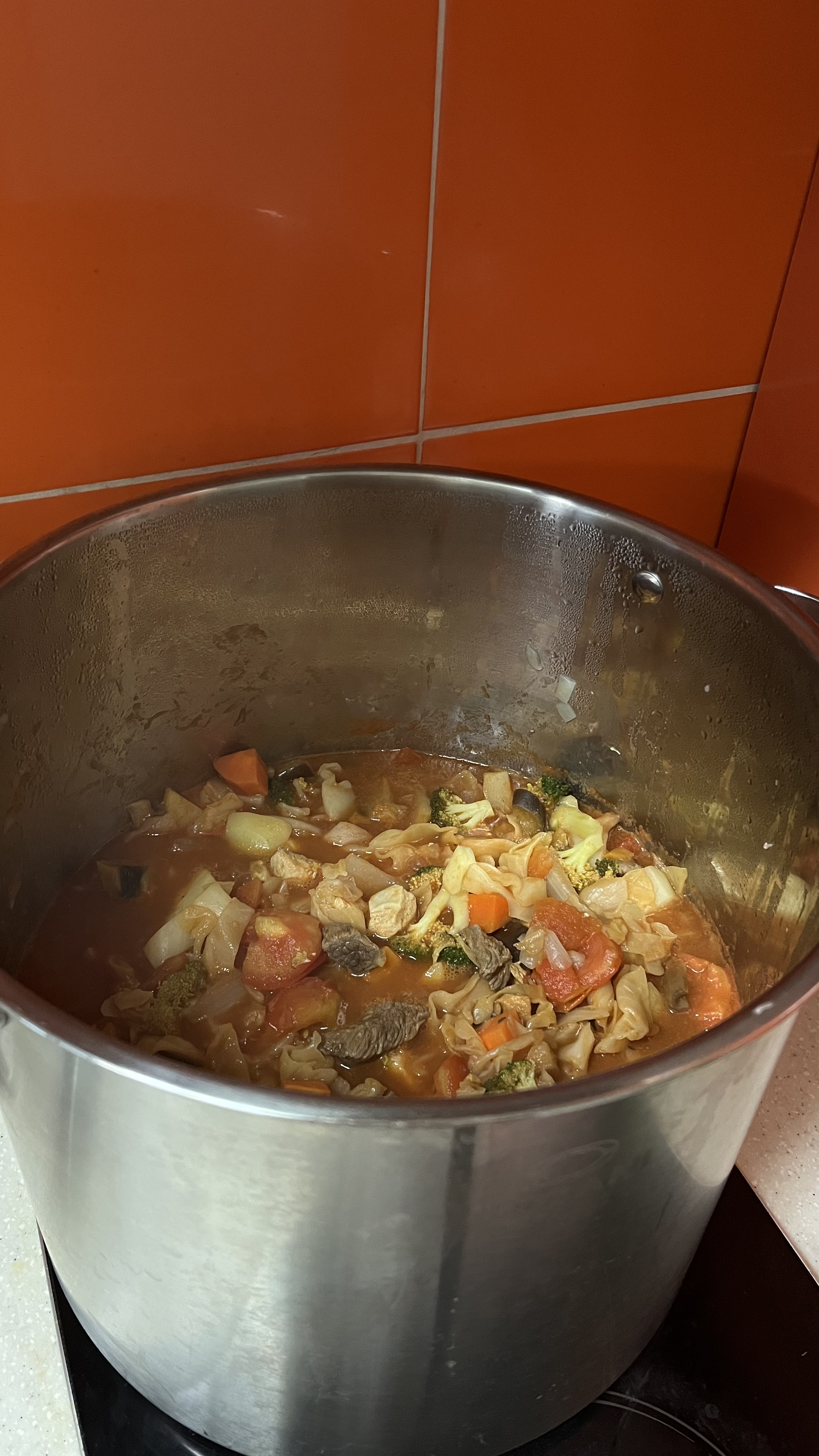 다음에는 야채를 줄이던지 토마토 스튜를 한 통 더 사던지