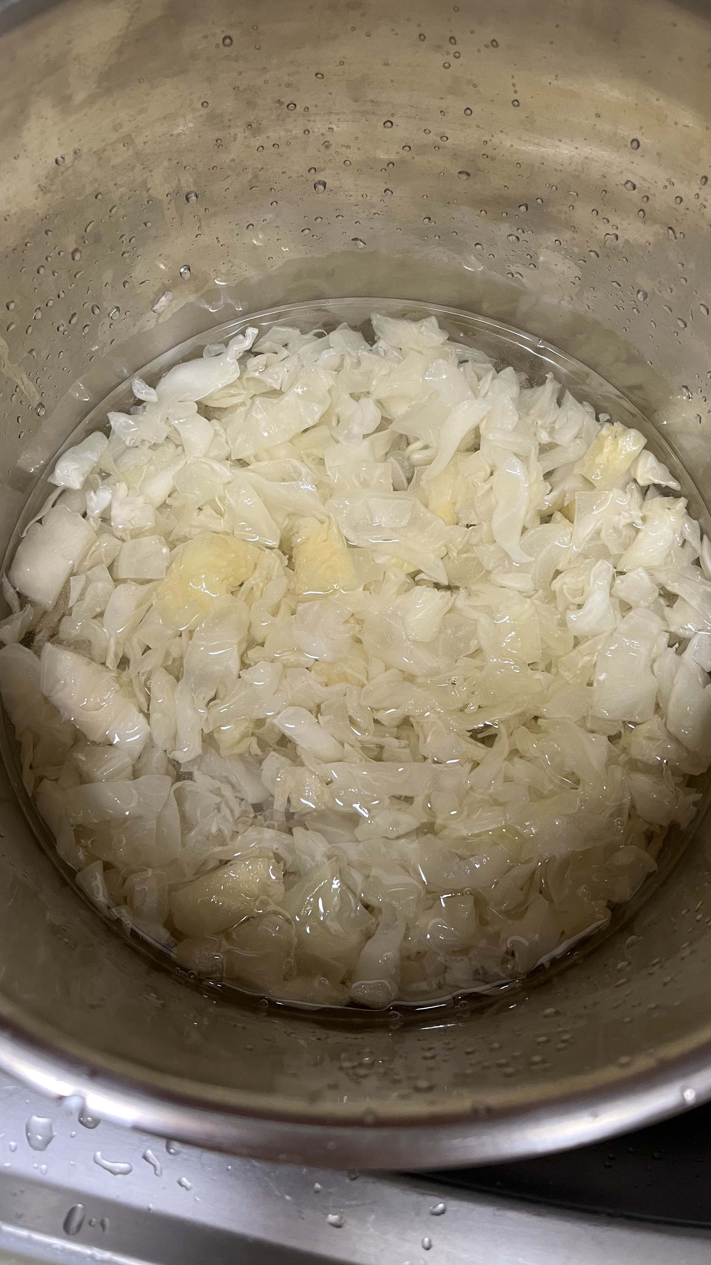 냉동 양배추는 여러번 씻어주고 찬기를 뺍니다.